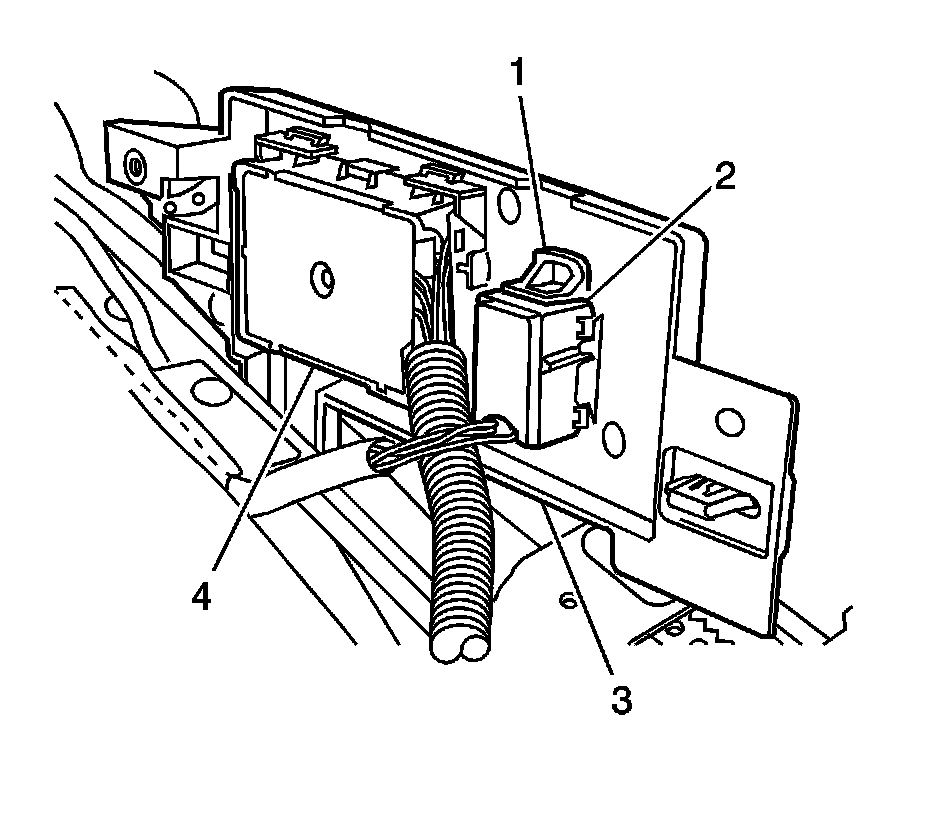 3. Release the tabs (1) that retain the heated seat switch (2) to the seat switch bezel (3).