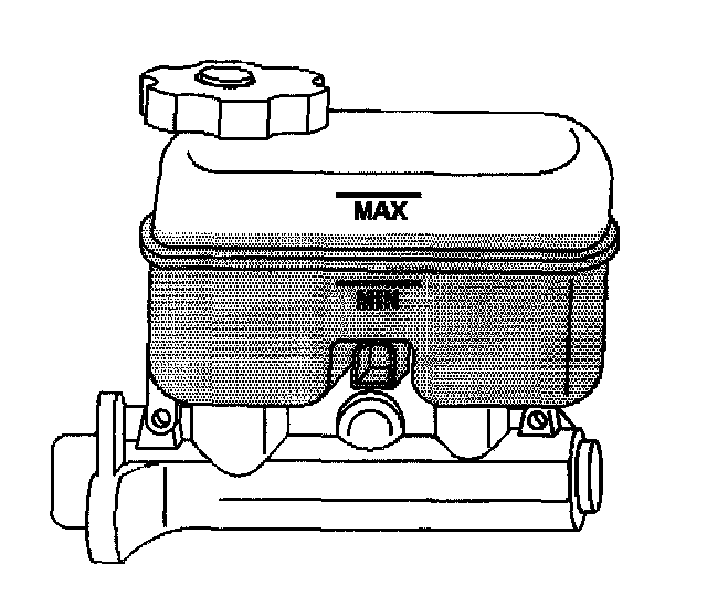 2. If the brake fluid is midway between the maximum-full point and the minimum allowable level, no brake fluid needs to be removed from the reservoir before proceeding.