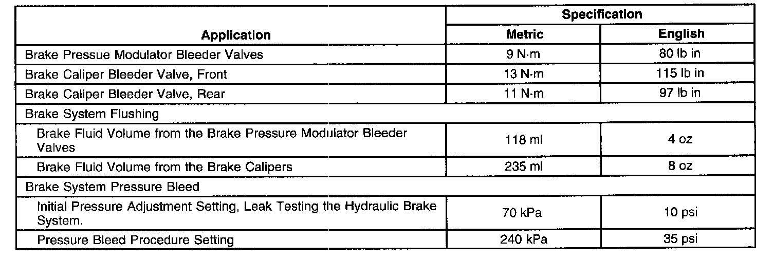 Brake Component Specifications