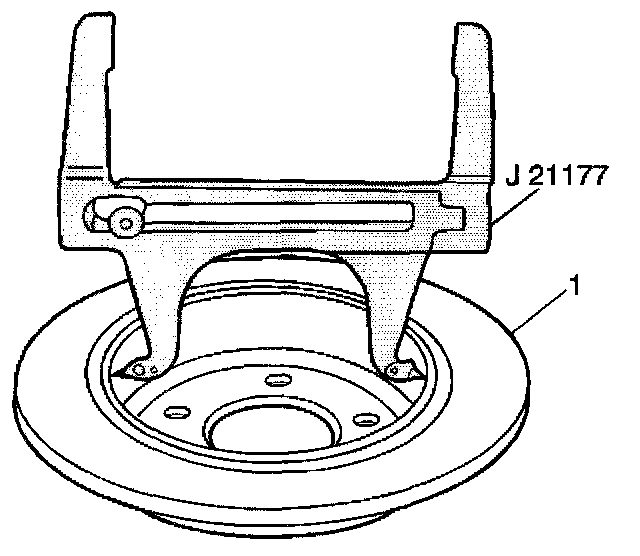 1. Adjust the J 21177-A until it contacts the inside diameter of the rotor (1).