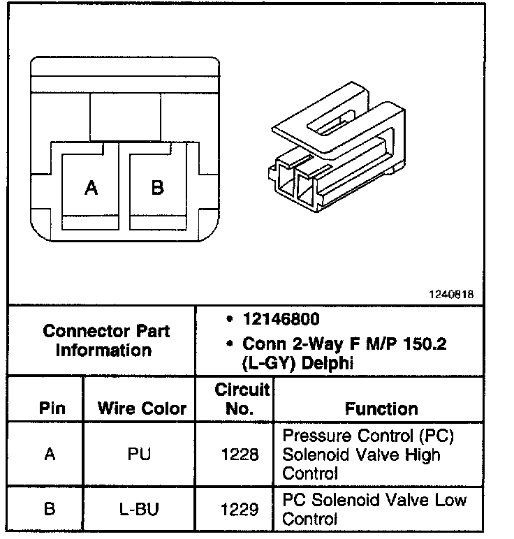 Pressure Control (PC) Solenoid Valve Connector, Wiring Harness Side
