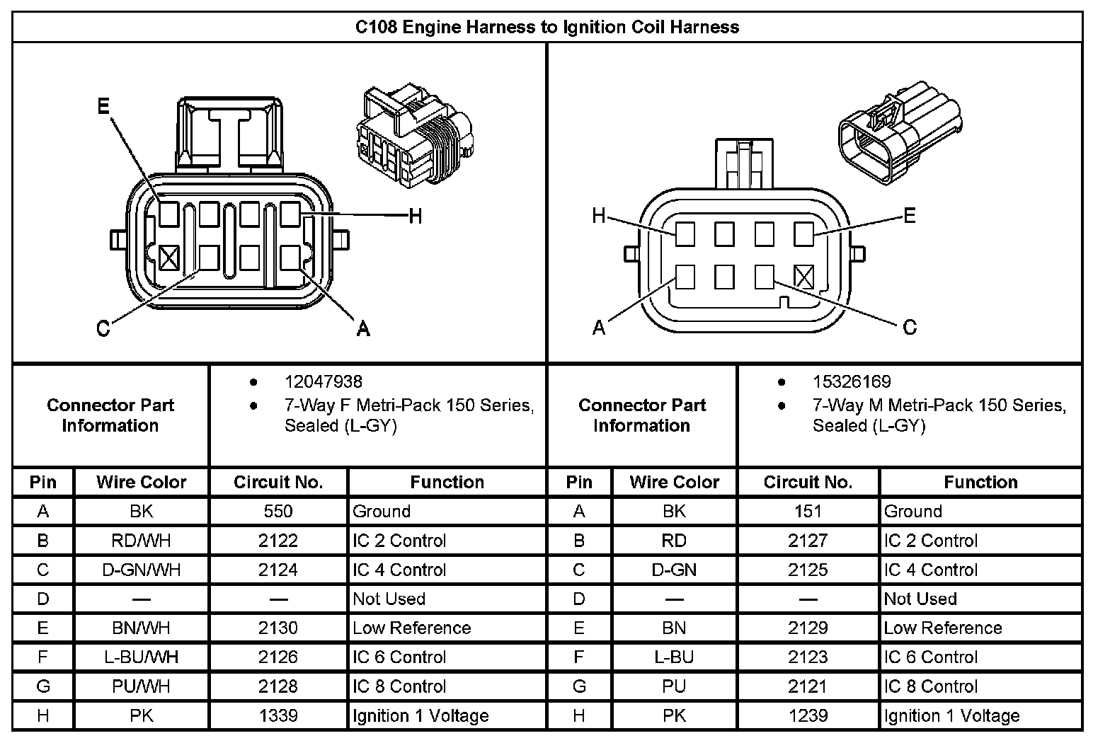 C108 Engine Harness to Ignition Coil Harness: