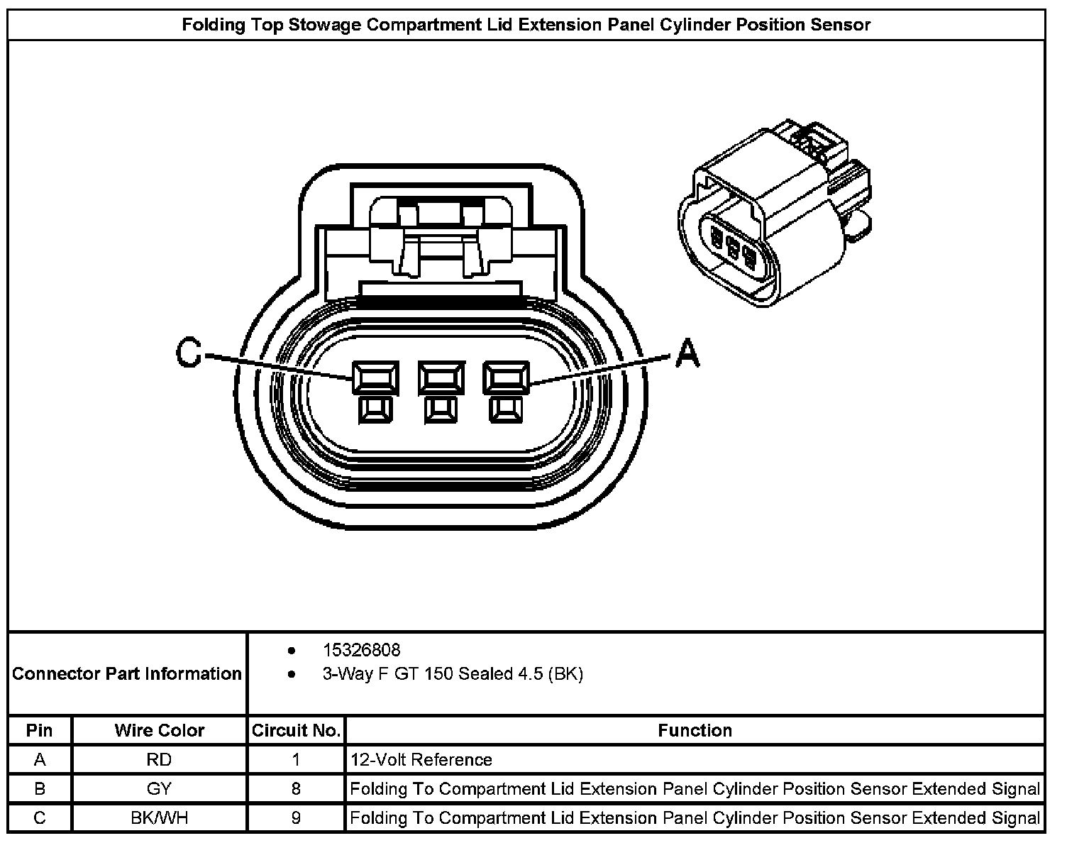 Folding Top Stowage Compartment Lid Extension Panel Cylinder Position Sensor: