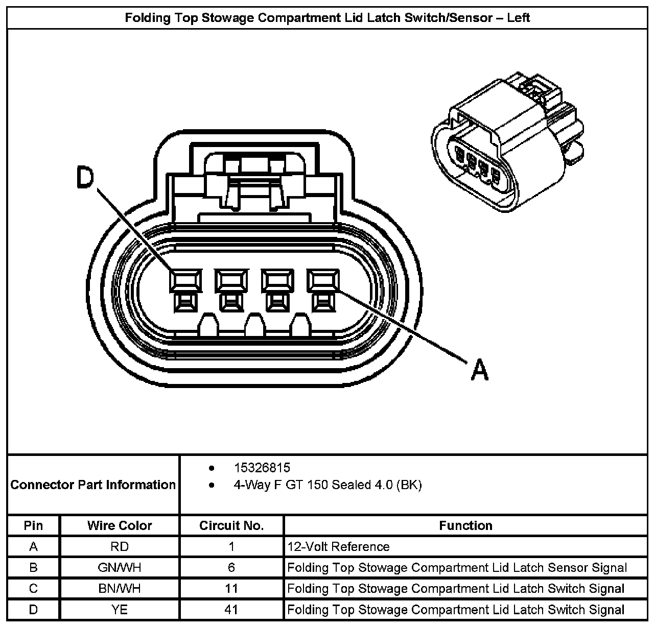 Folding Top Stowage Compartment Latch Cylinder Position Sensor - Left: