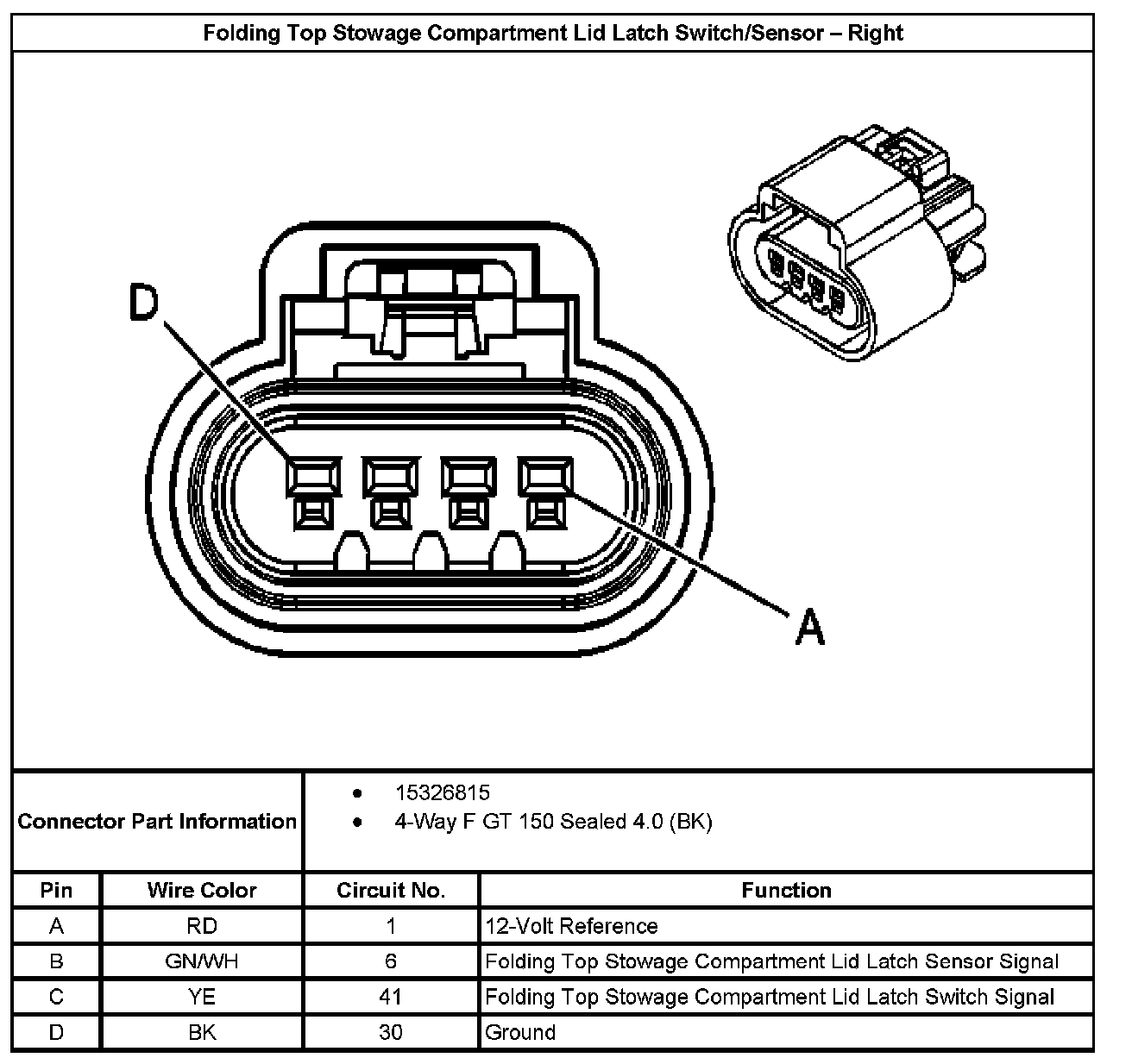 Folding Top Stowage Compartment Lid Latch Switch/Sensor - Right: