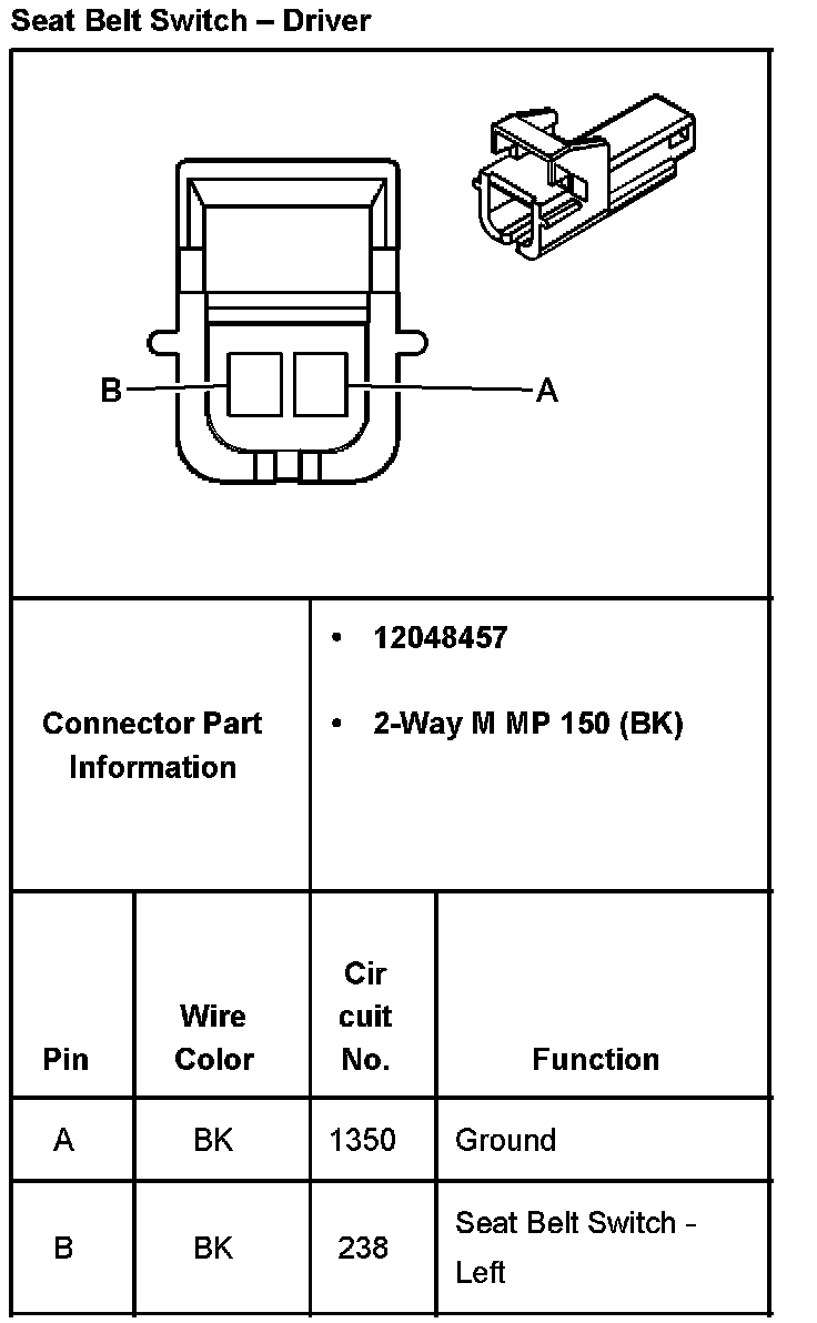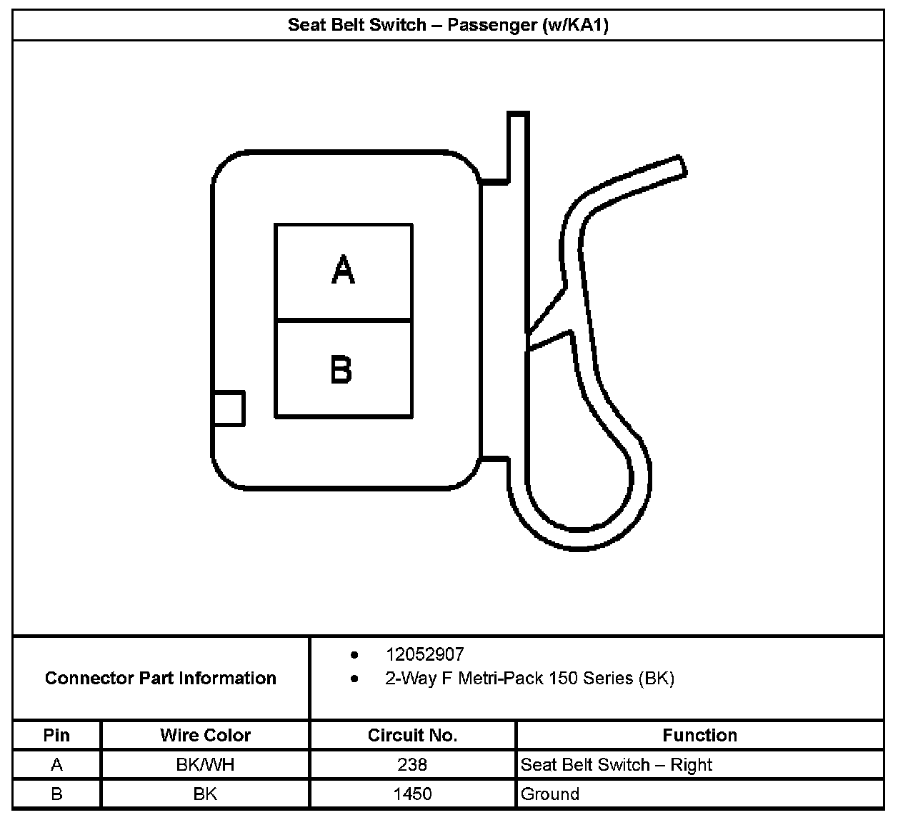 Seat Belt Switch - Passenger (With RPO Code KA1):