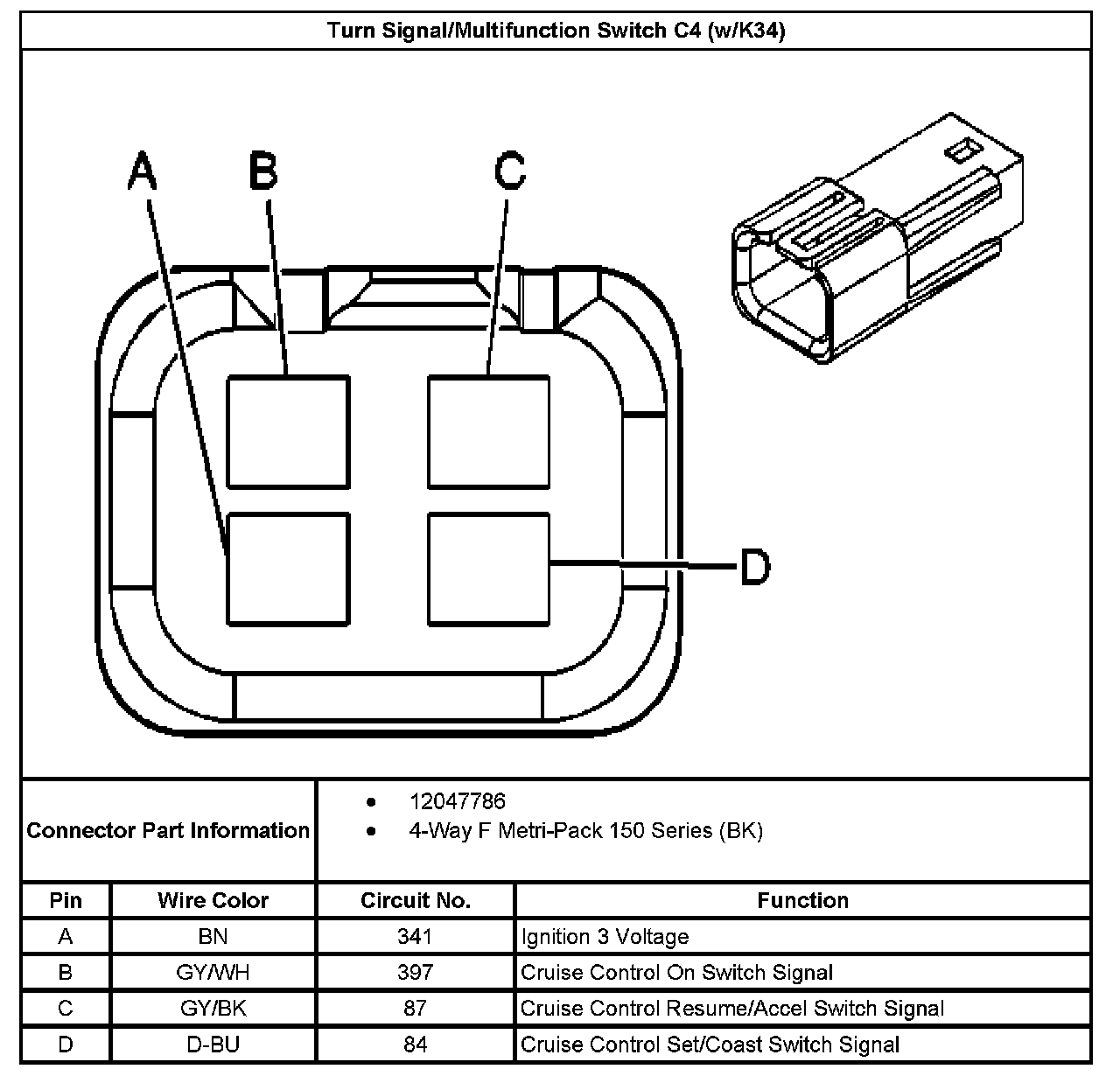 Turn Signal/Multifunction Switch C4 (With RPO Code K34):