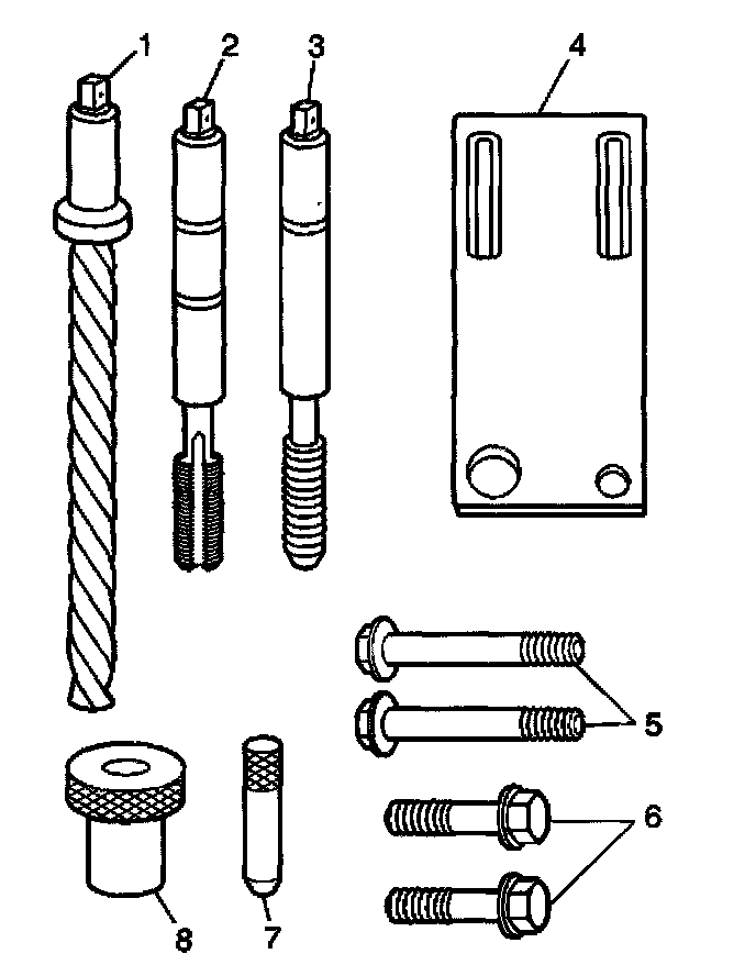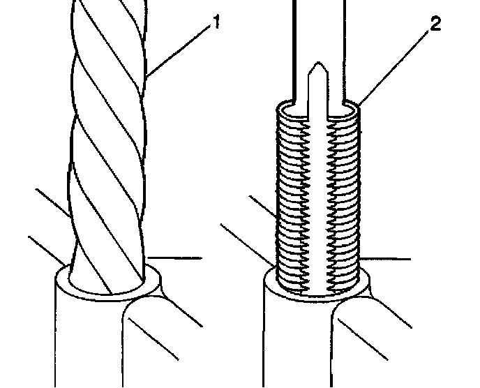 ^ The use of a cuffing type fluid GM P/N 1052864 (Canadian P/N 992881), WD 400, or equivalent is recommended when performing the drilling, counterboring, and tapping procedures.