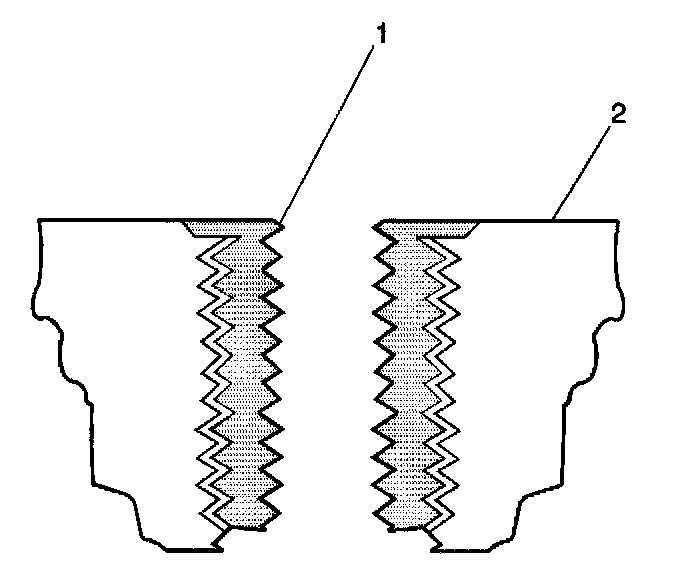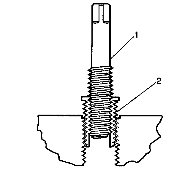 11. Apply threadlock LOCTITE 277, J 42385-109 (1), or equivalent to the insert OD threads (2).