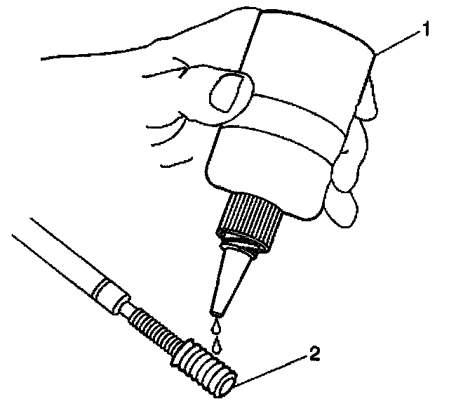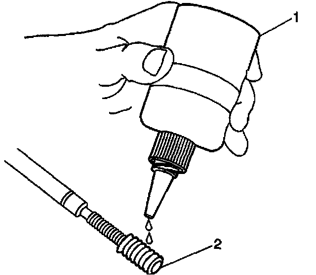 10. Lubricate the threads of the installer tool (2) with the driver oil (1).