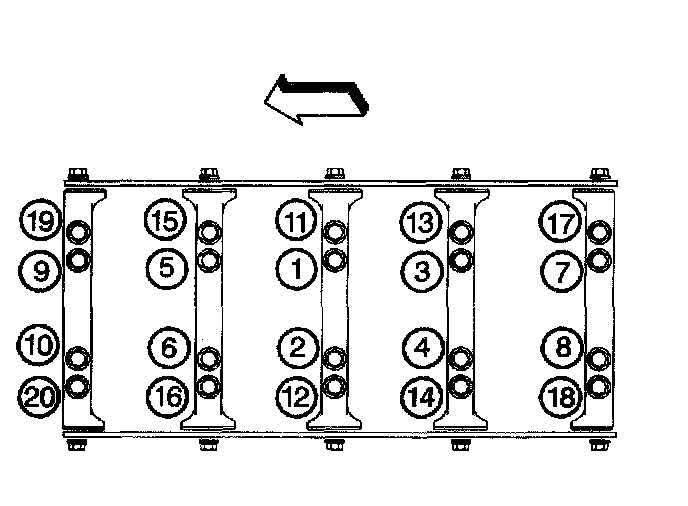 2. Measure the depth of the cylinder head bolt holes (1-10) to determine the proper drill and tap depths.