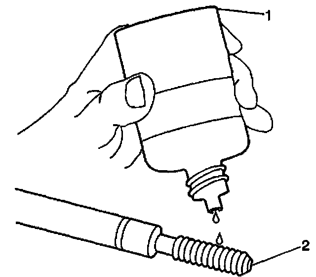12. Apply threadlock LOCTITE Tm 277, J 42385-109 (1), or equivalent to the insert OD threads (2).