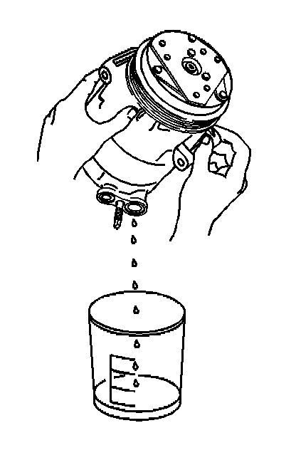 3. Drain the calculated amount of refrigerant oil from the replacement compressor.
