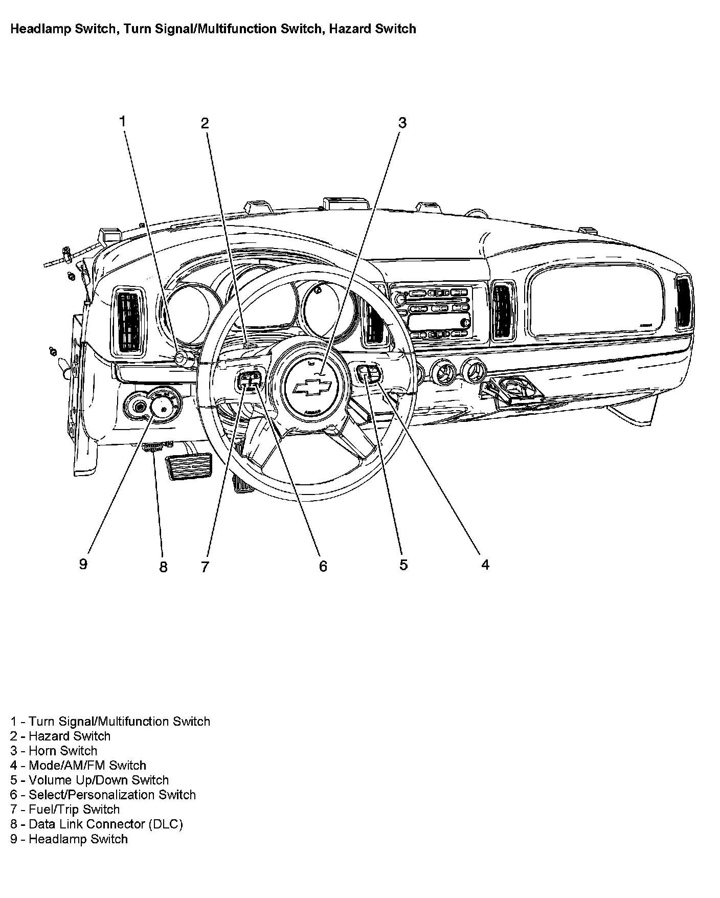 Headlamp Switch, Turn Signal/Multifunction Switch, Hazard Switch