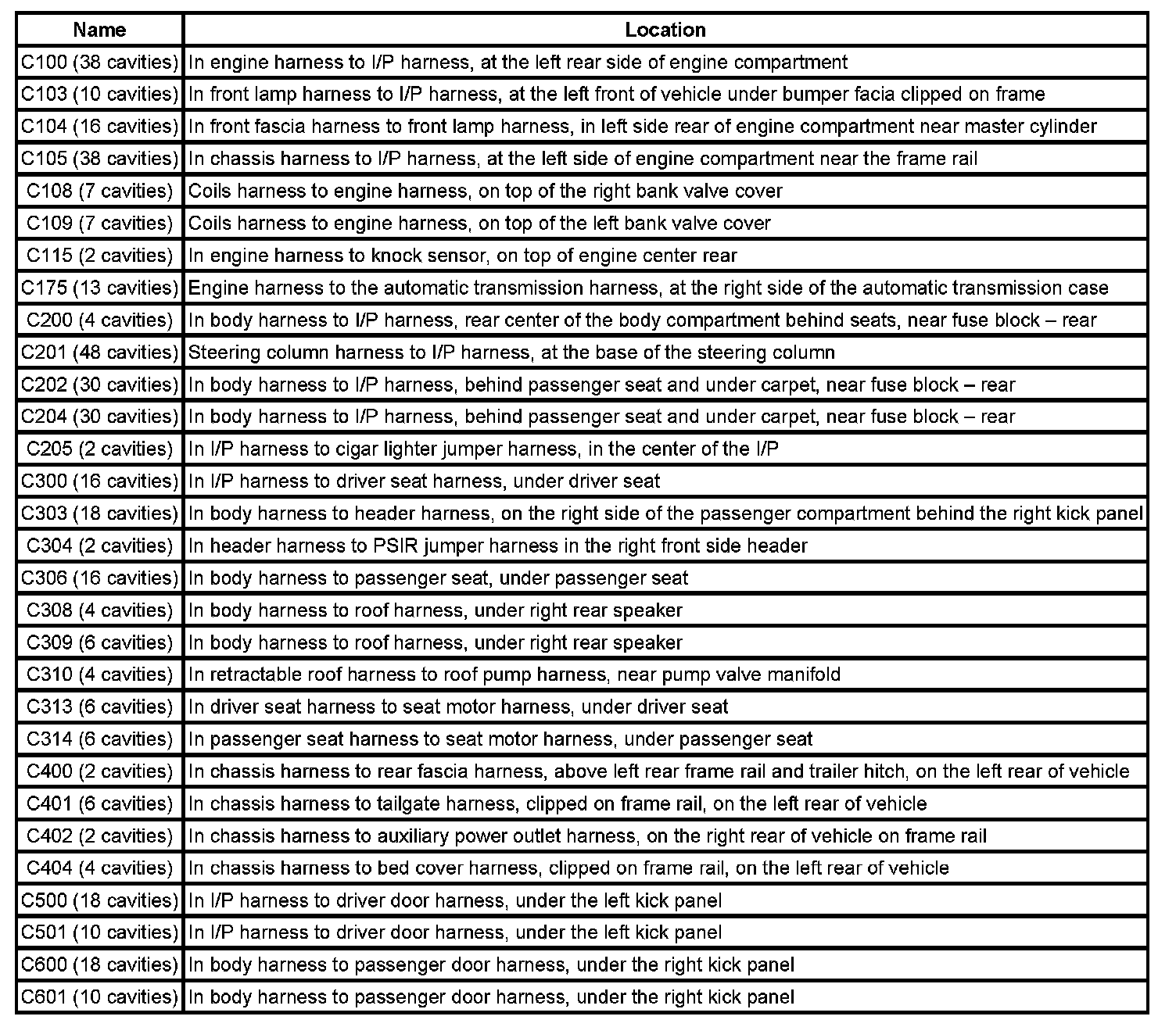 Connector Locations
