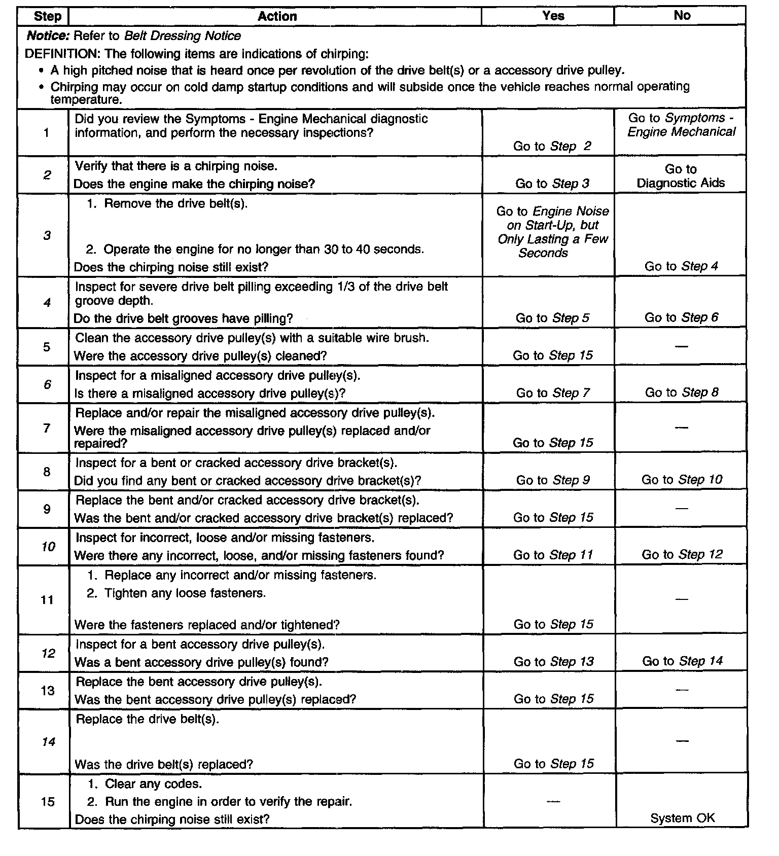 2. The chirping noise may not be engine related. This step is to verify that the engine is making the noise. If the engine is not making the noise do not proceed any further in this table.