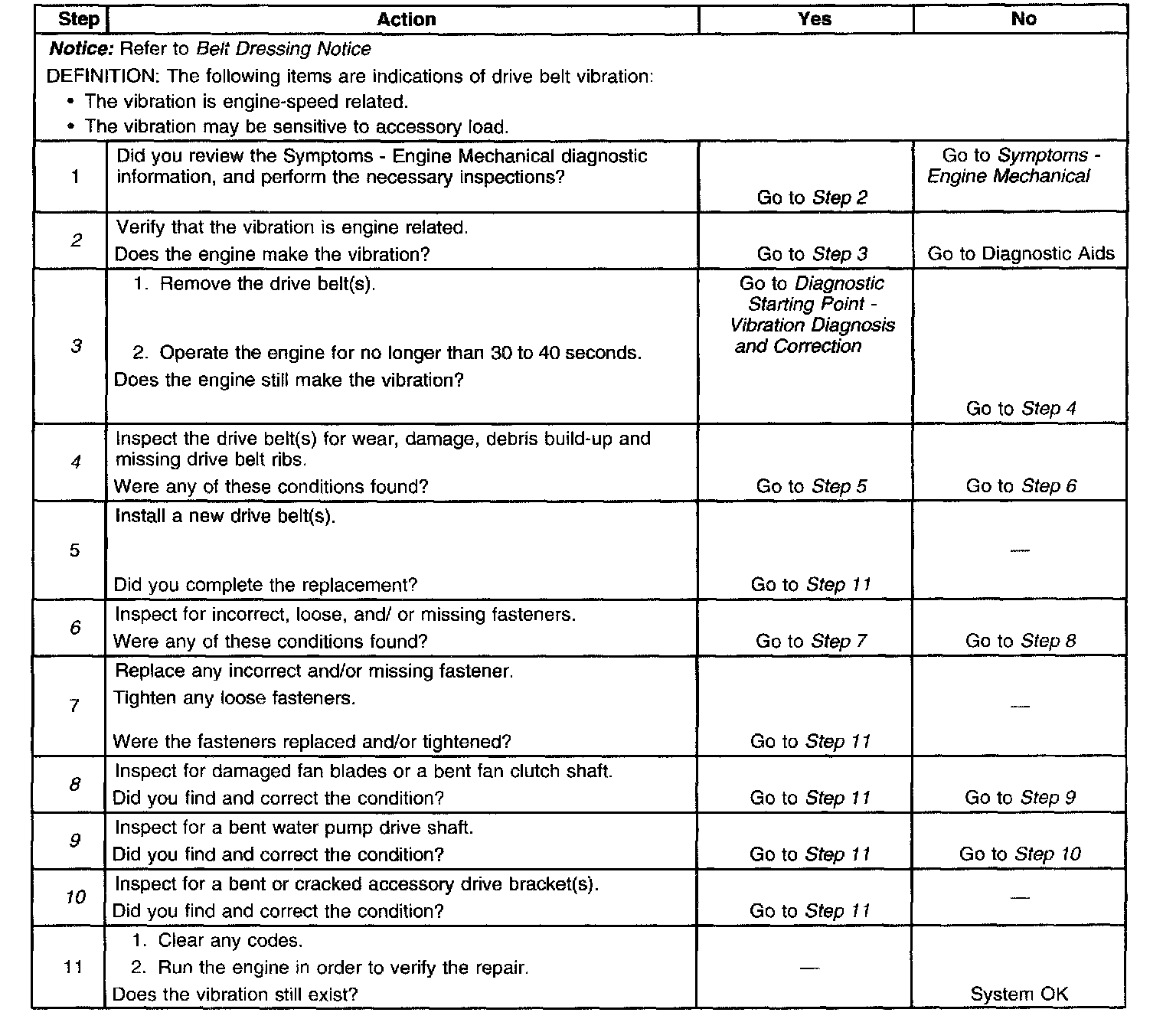 Drive Belt Vibration DiagnosisTest 1-11: