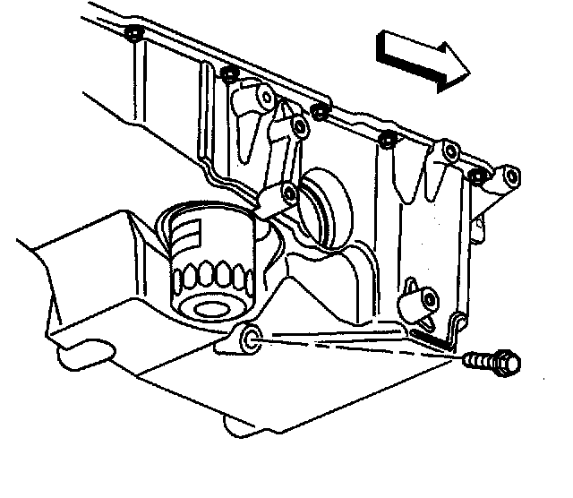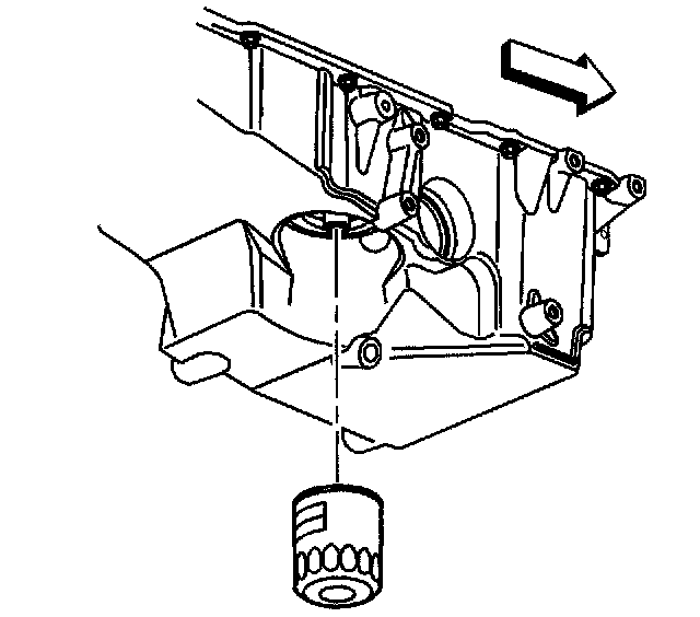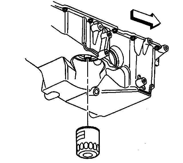 Important: In order to completely drain the oil from the oil pan internal baffling, the bottom of the oil pan must be level during the oil drain procedure.