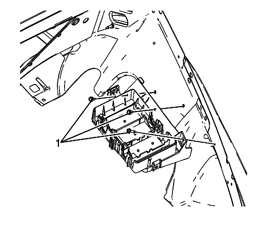 5. Install the fuse relay center cover (1) over the relay center bolts. Press downward to engage the tabs.