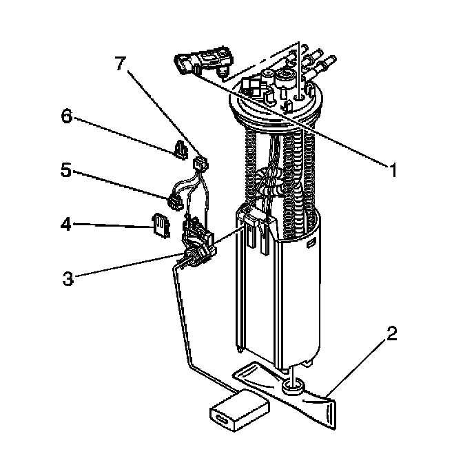 3. Connect the electrical connector (7) to the fuel level sensor.