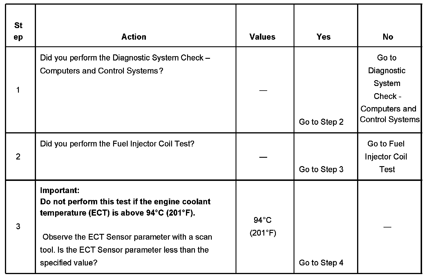 The number below refers to the step number on the diagnostic table.