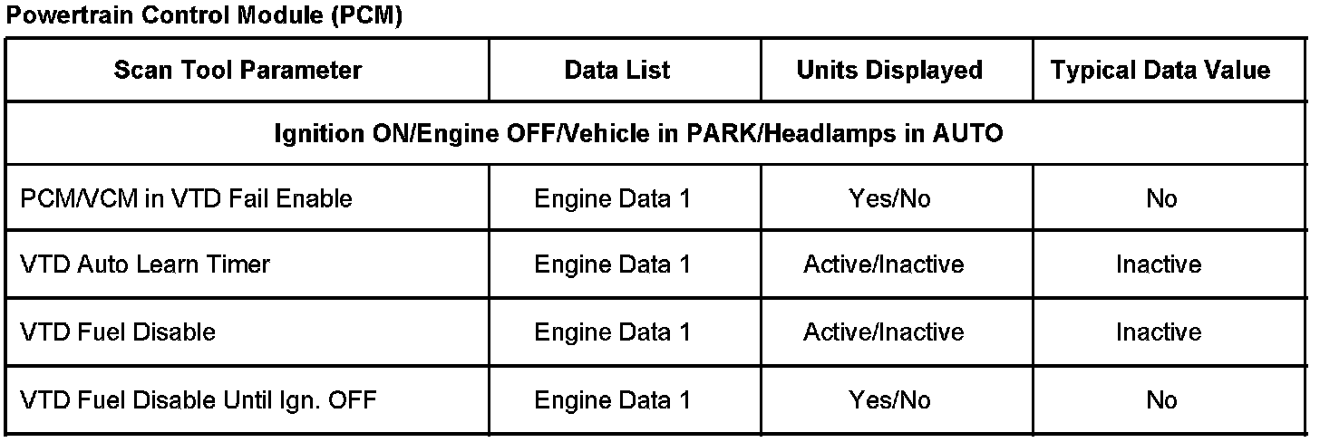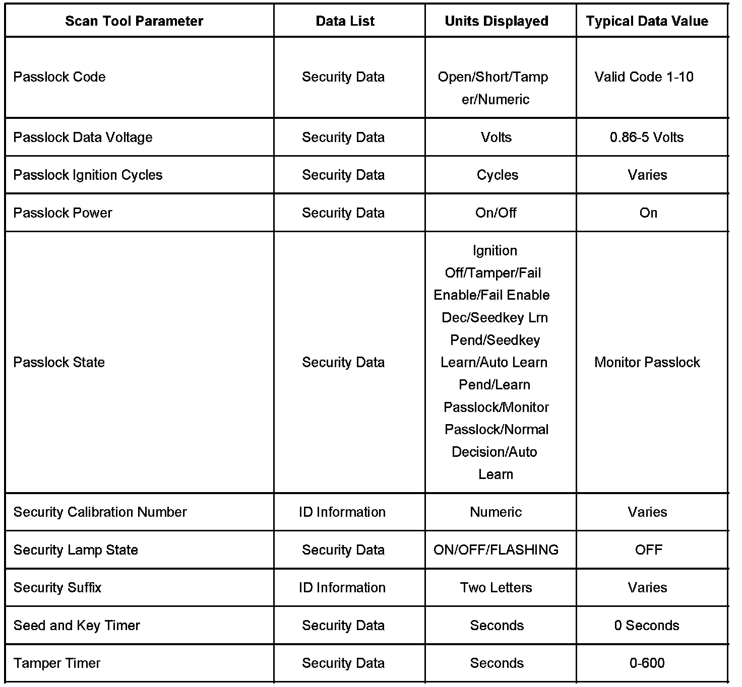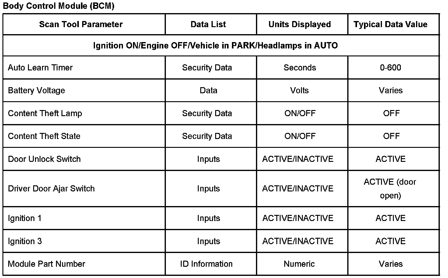 Scan Tool Data List - Antitheft System