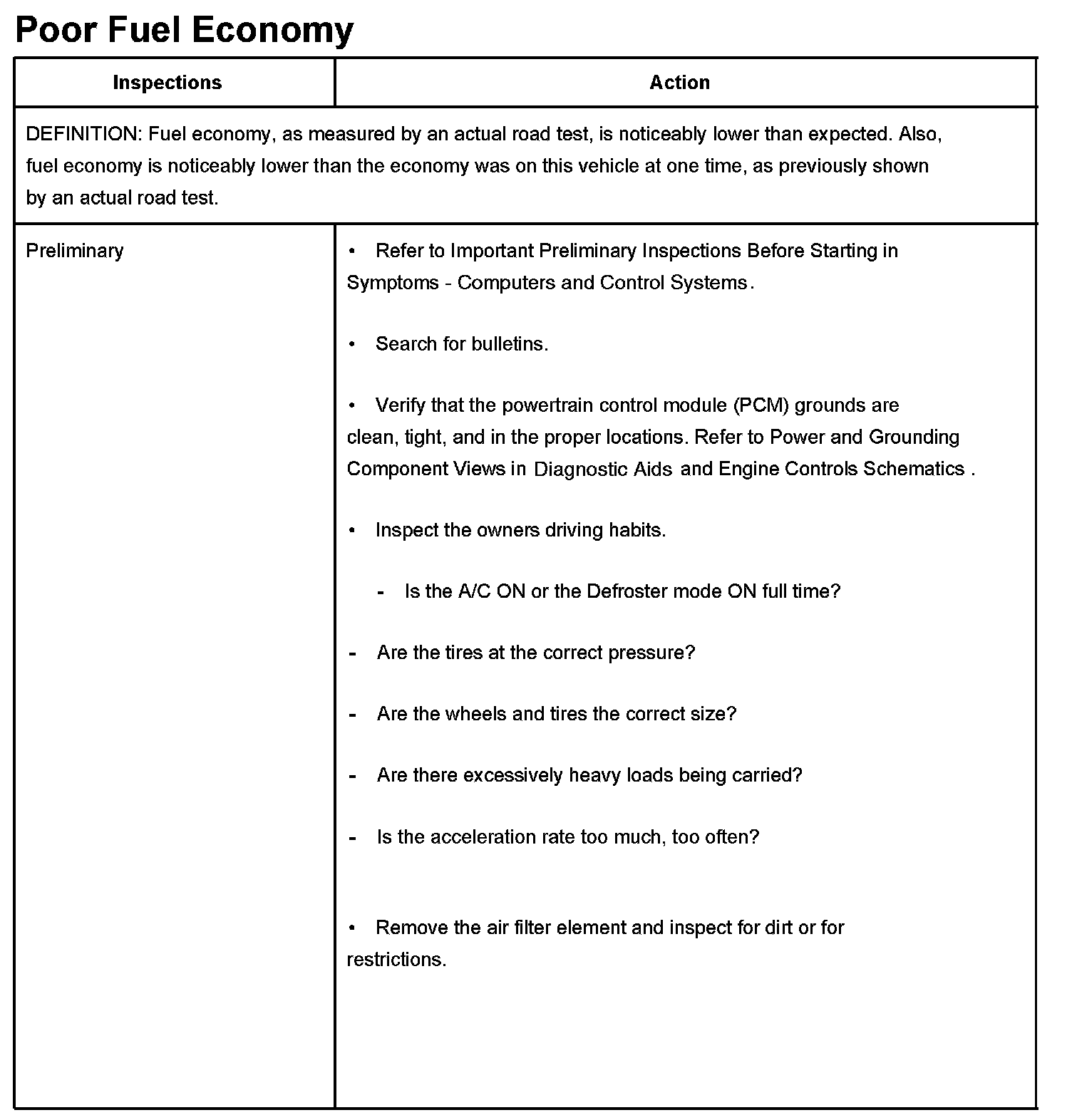 Poor Fuel Economy