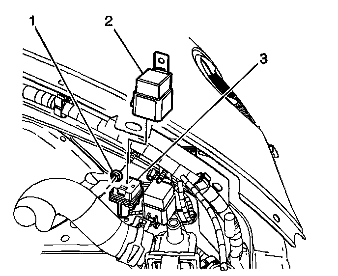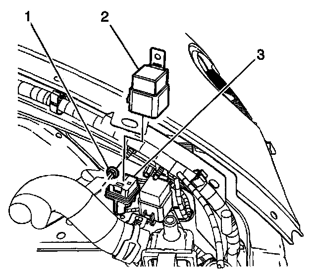 2. Lift the relay (2) and harness connector (3) up and disconnect the relay (2).