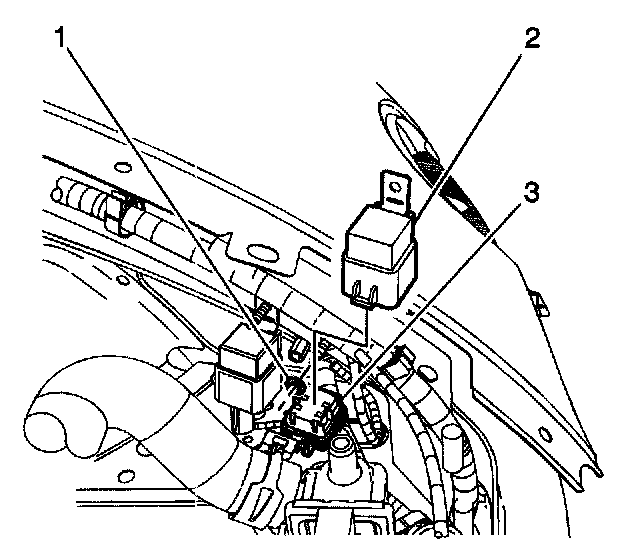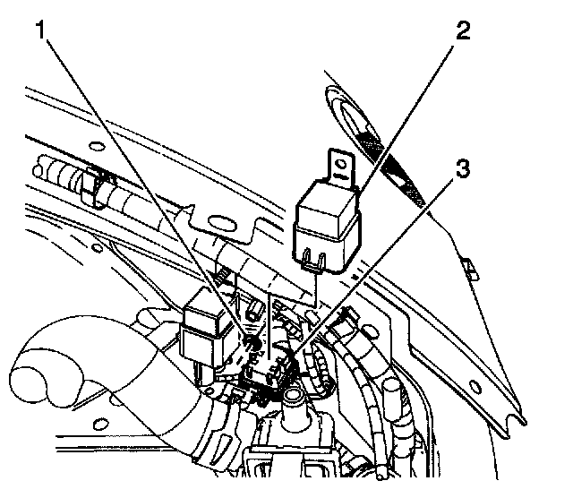 2. Lift the relay (2) and harness connector (3) up and disconnect the relay (2).