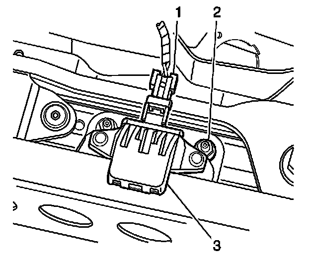 3. Locate the seat position switch (3) under the seat on the inside of the inner seat rail.