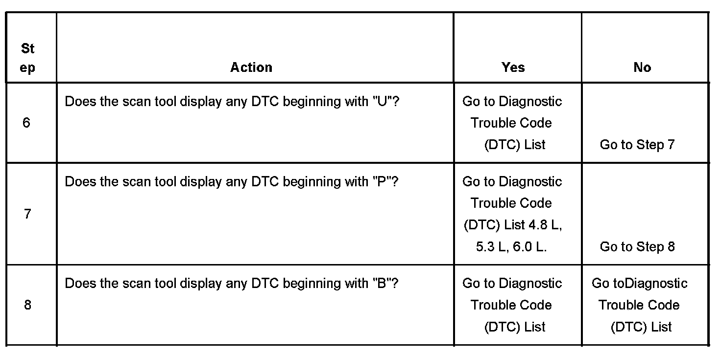 6. The presence of DTCs which begin with "U" indicate some other module is not communicating. The specified procedure will compile all the available information before tests are performed.