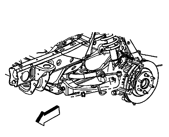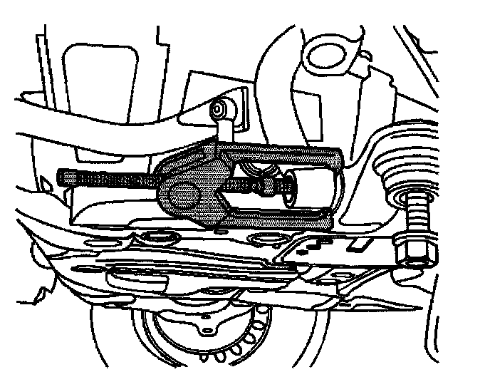 Important: Ensure that the lower control arm is parallel to the lower control arm bracket during the installation and tightening of the lower control arm mounting bolts and nuts. This will ensure correct alignment of the lower control arm bushings.