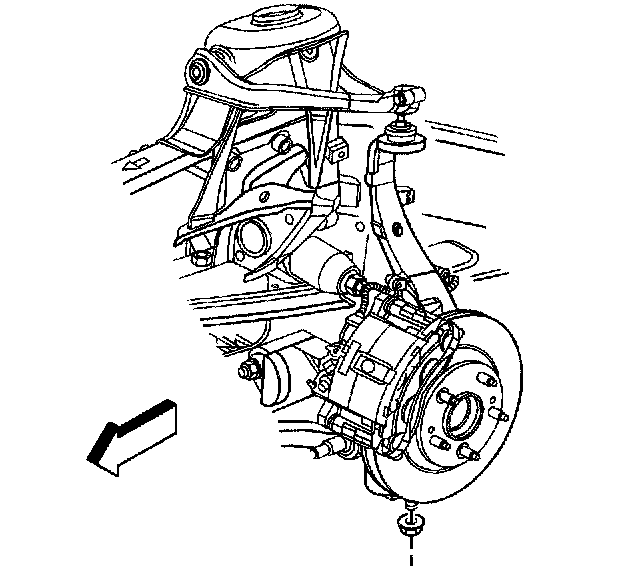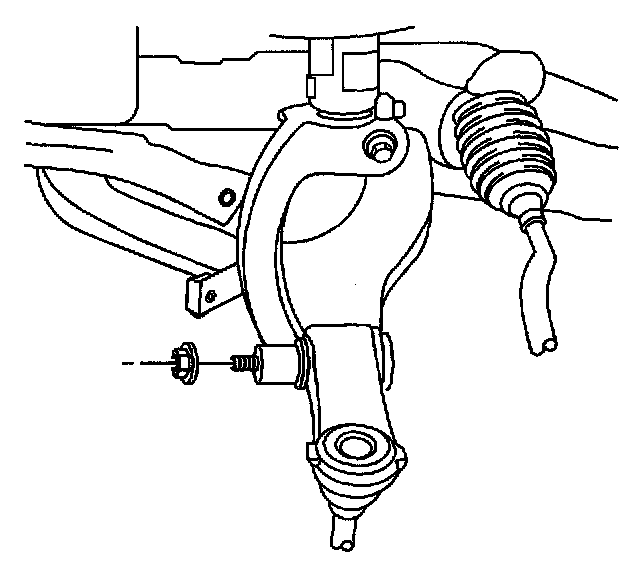 13. Pivot the lower control arm outward and downward in order to disconnect the lower control arm from the lower control arm bracket.