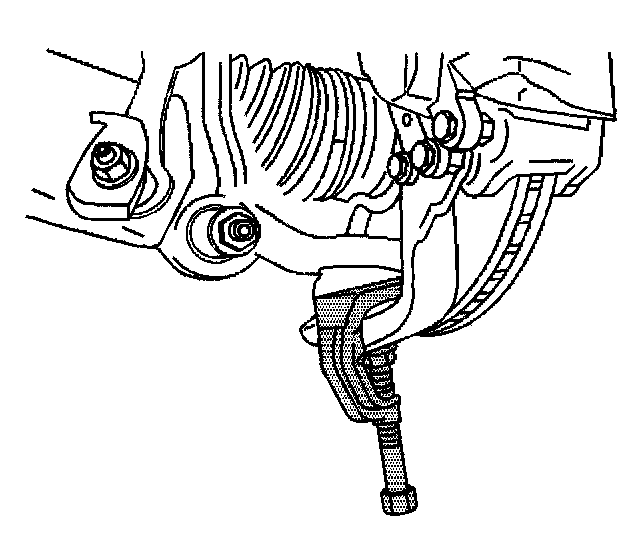 12. Disconnect lower ball joint from steering knuckle using J43631.