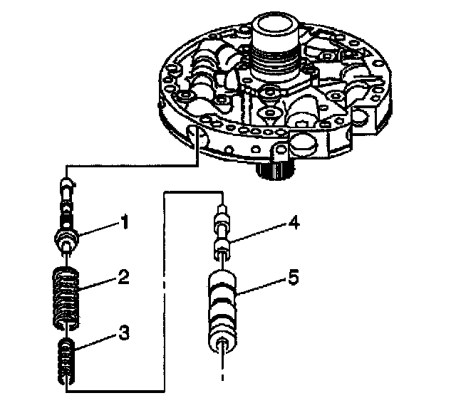 6. Remove the pressure regulator isolator spring (3) and the pressure regulator valve spring (2).