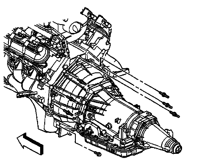 19. Disconnect the transmission oil cooler lines from the transmission. Refer to Transmission Fluid, Cooler Hose/Pipe Replacement.