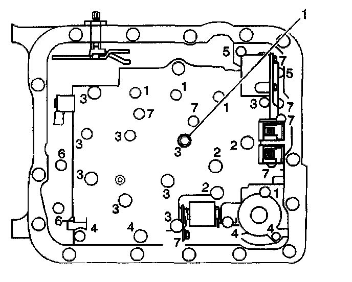 9. Remove the TCC PWM solenoid (1) in order to access the TCC solenoid retaining bolts.