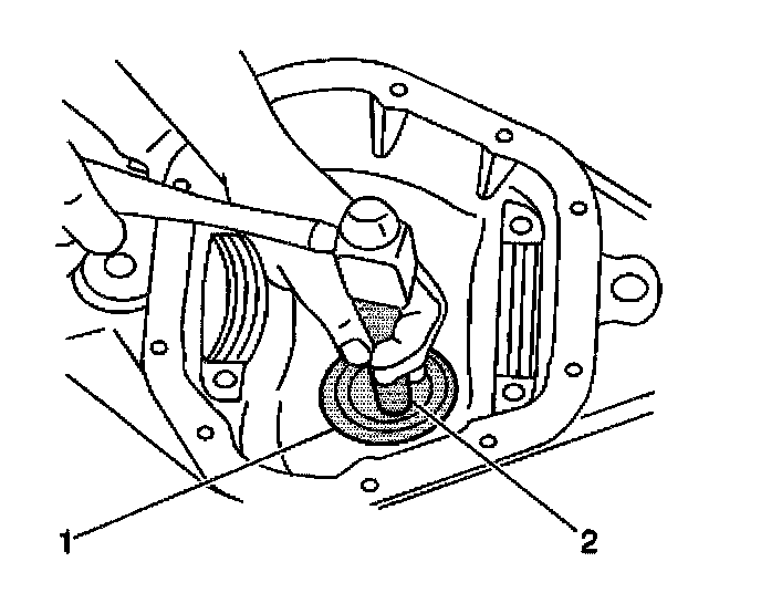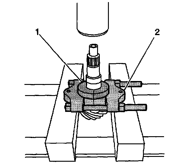 1. Install the outer pinion bearing cup using the J 8611 -01 (1) and the J 8092 (2).
