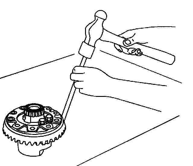 13. Remove the ring gear from the differential case. Drive the gear off with a brass drift if necessary.