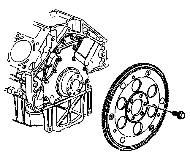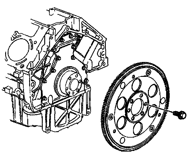 2. Apply threadlock GM P/N 12345382, (Canadian P/N 10953489), or equivalent to the threads of the flywheel bolts.