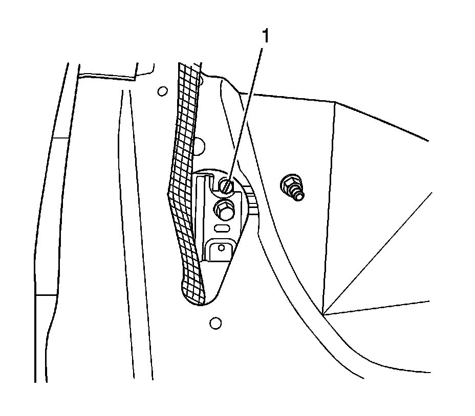 8. To adjust the driver side door window fore/aft, turn the adjustment screw (1), located in the rear access hole.