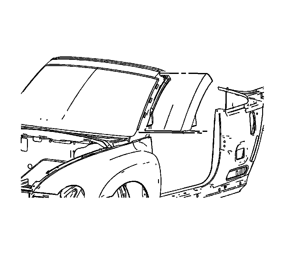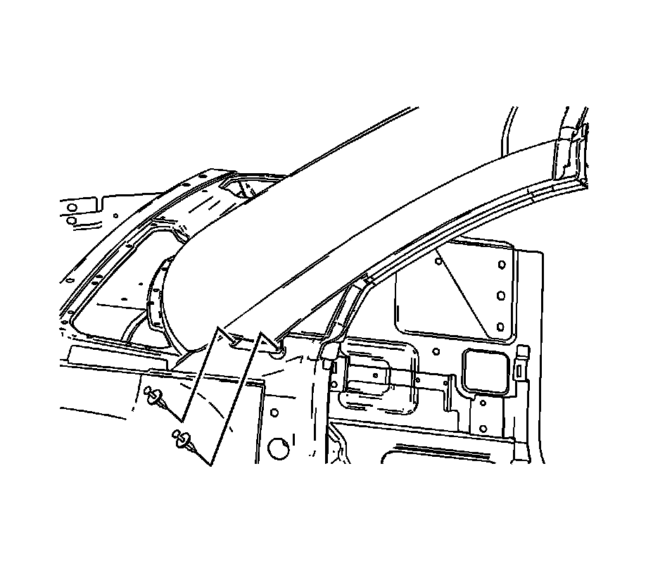 Important: When removing the upper windshield frame applique retainer, use caution to prevent the retainer from entering the water run channel in the header seal.