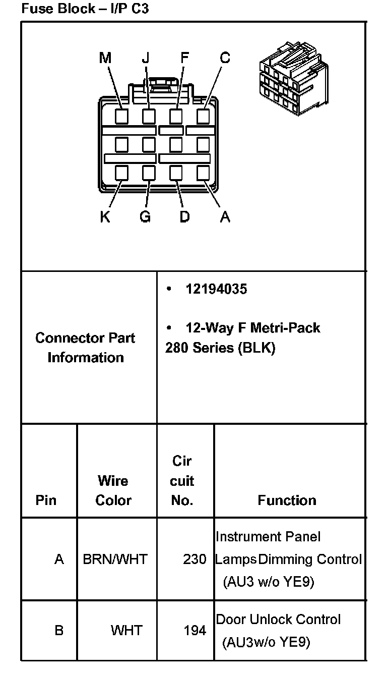 Fuse Block- I/P C3 Part 2: