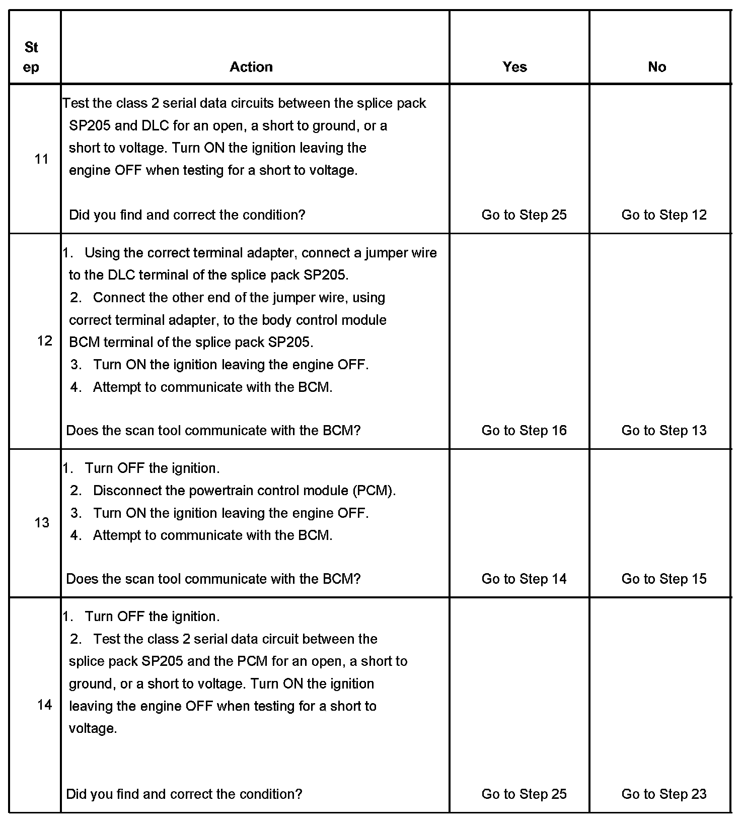 13. This test isolates the BCM class 2 serial data circuits.