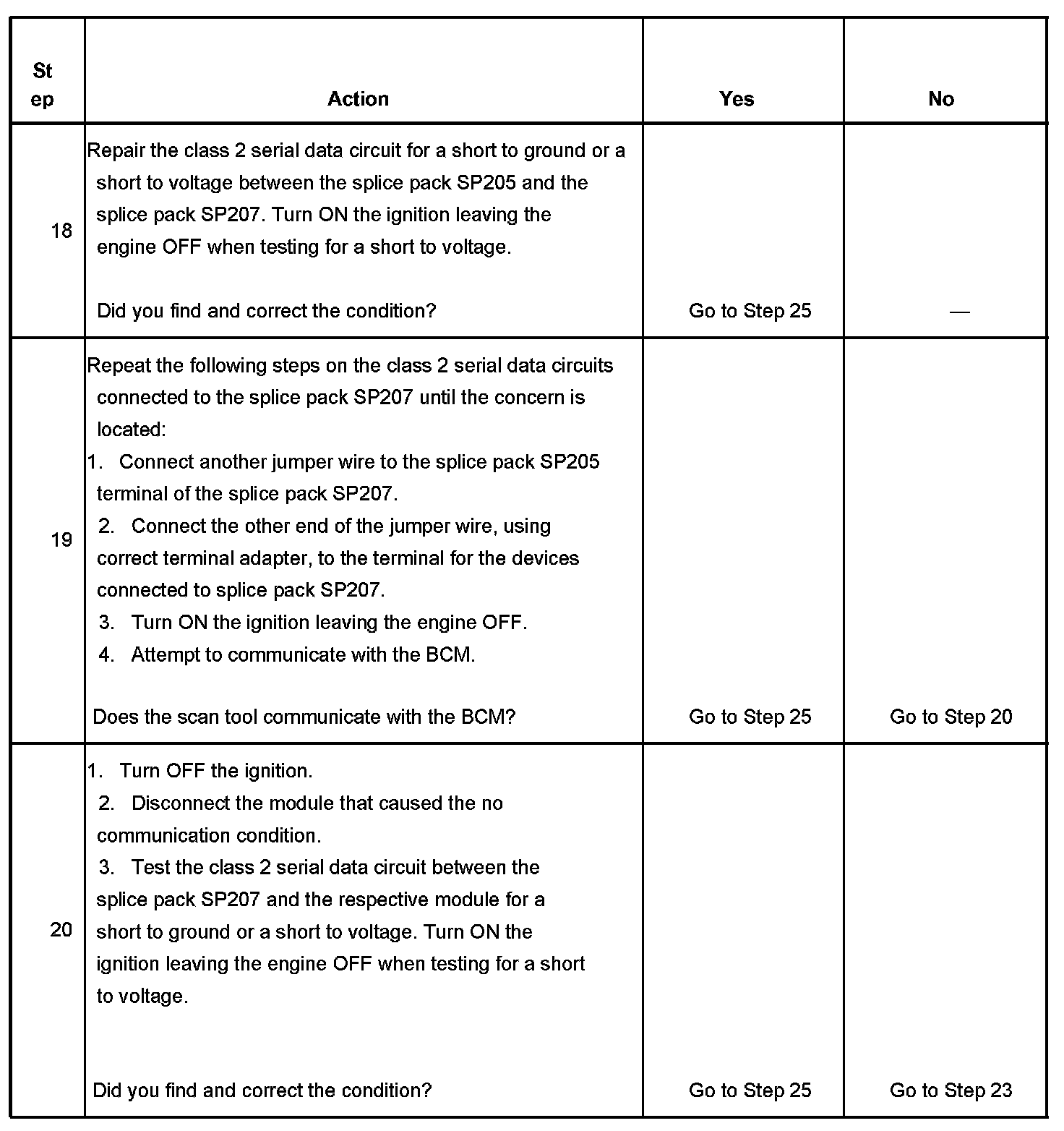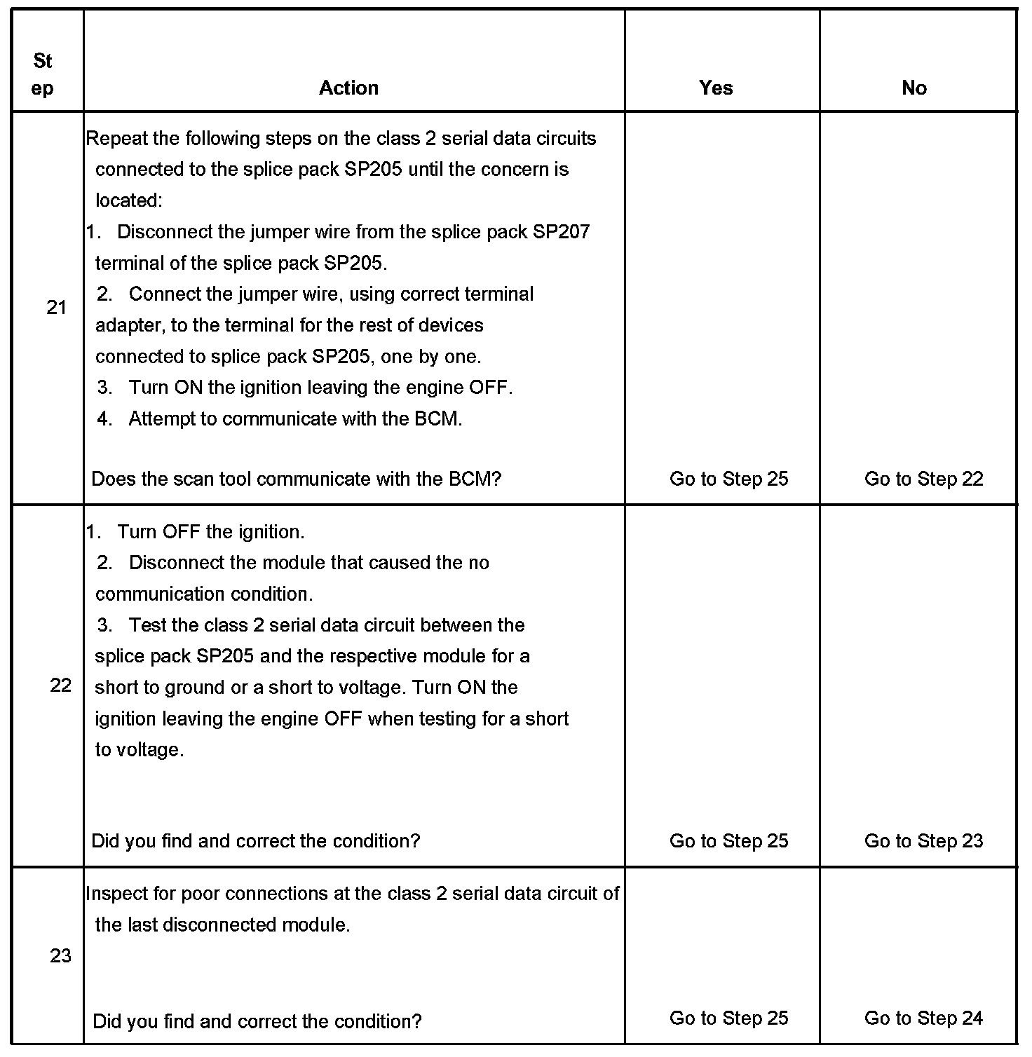 21. This test isolates the rest of the splice pack SP205 serial data circuits.