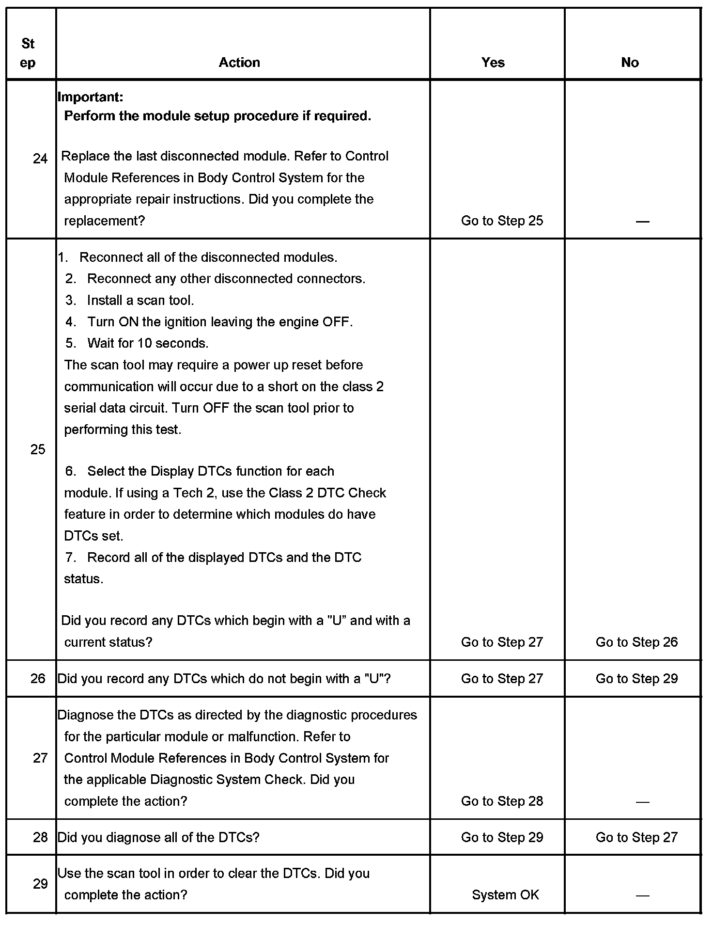 25. If there are no current DTCs that begin with a "U", the communication malfunction has been repaired.