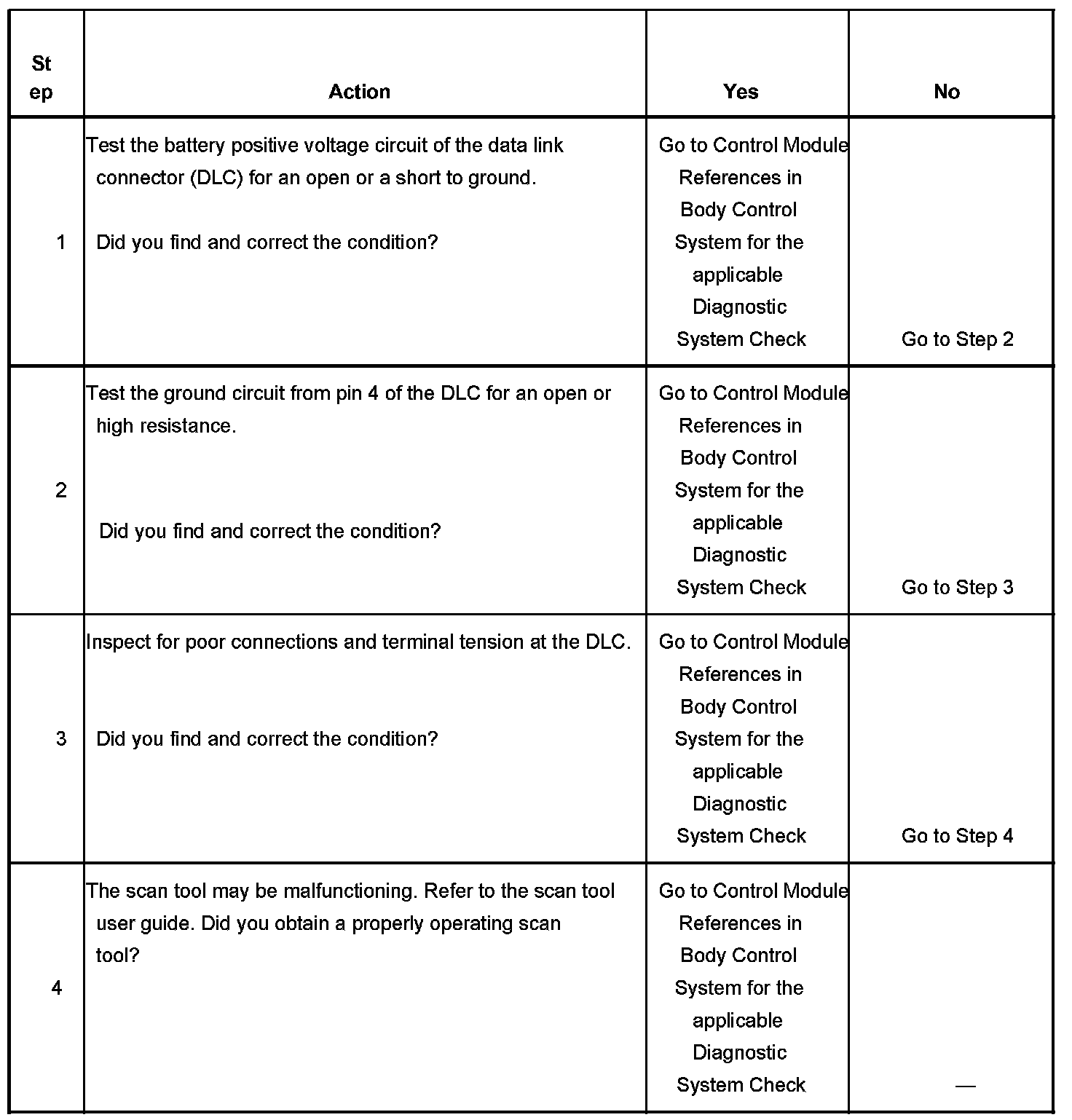 4. If the battery positive voltage and ground circuits of the DLC are functioning properly. The malfunction must be due to the scan tool.