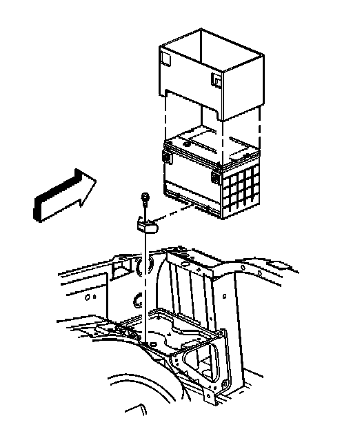 5. Remove the battery hold down retainer bolt and retainer.