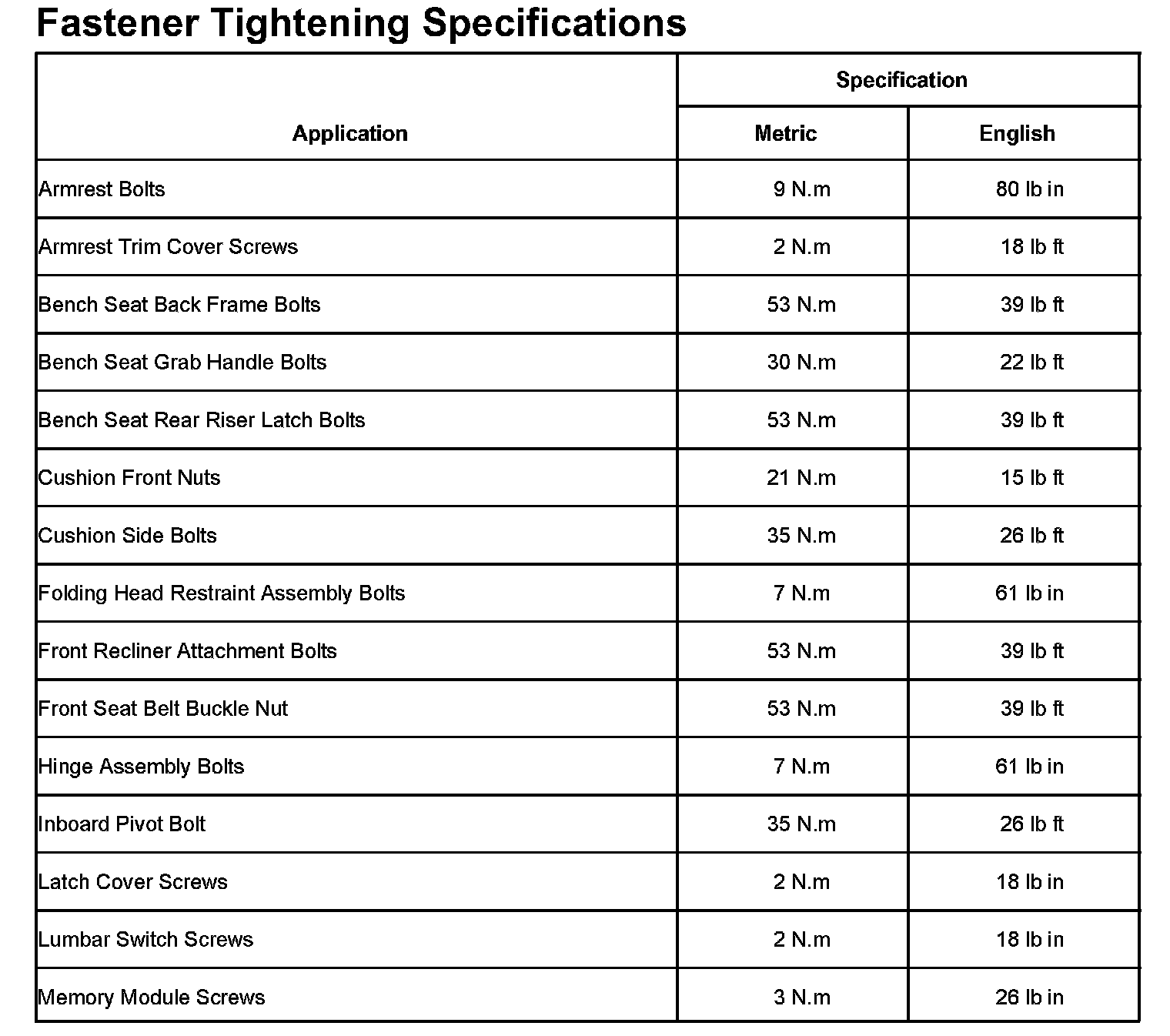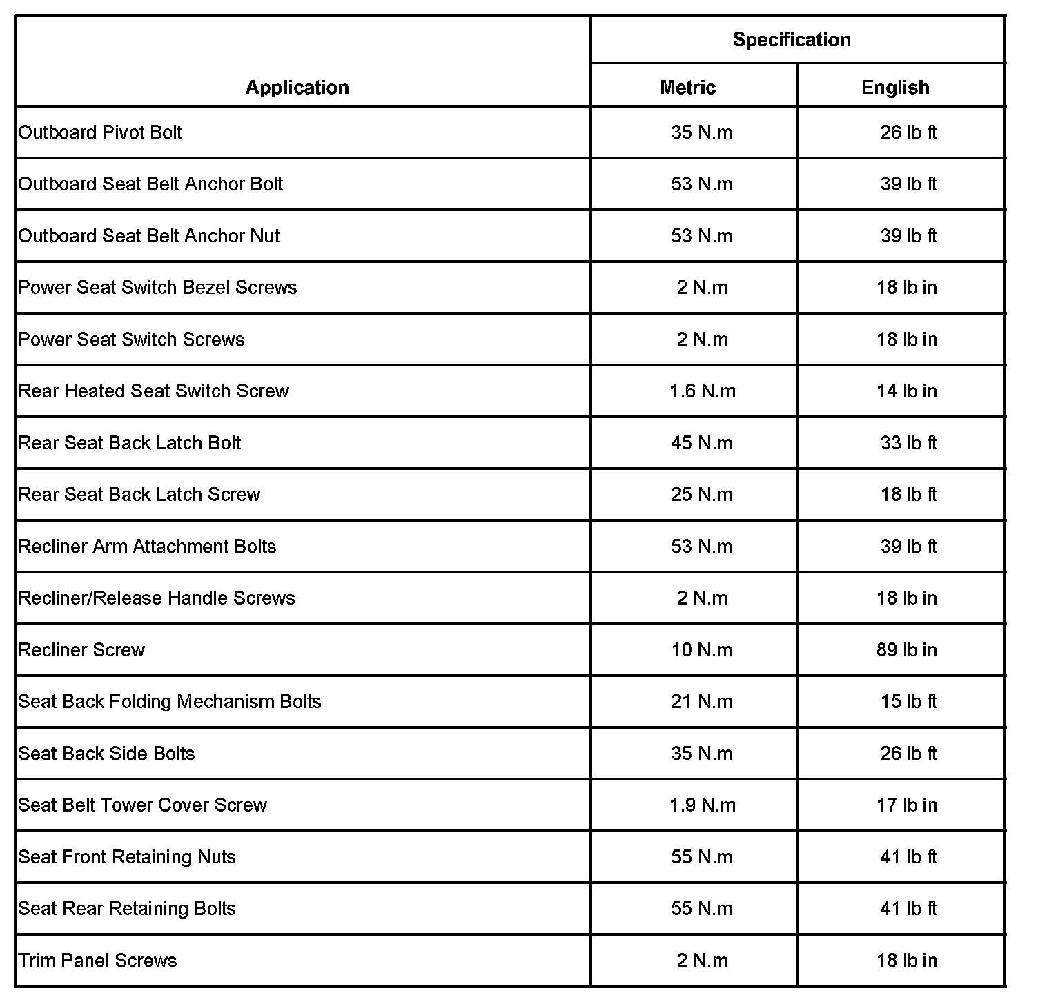 Seats: Specifications