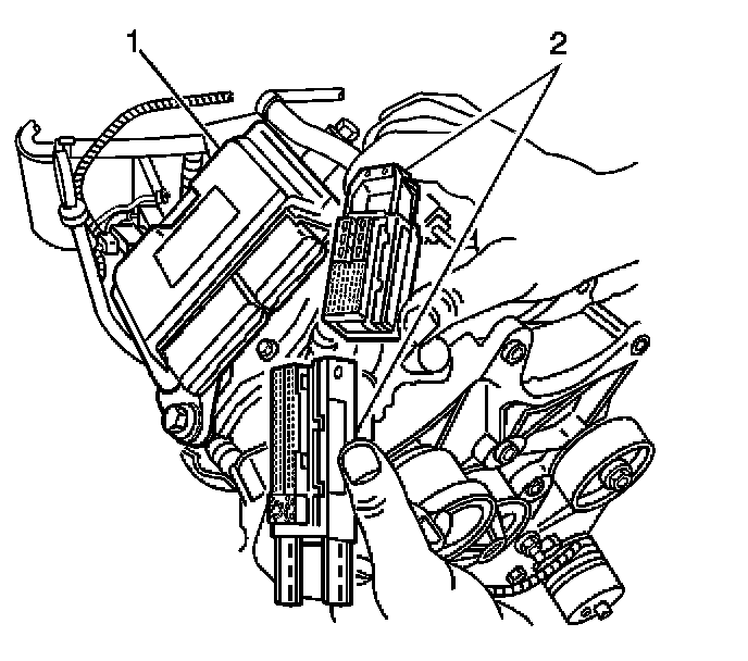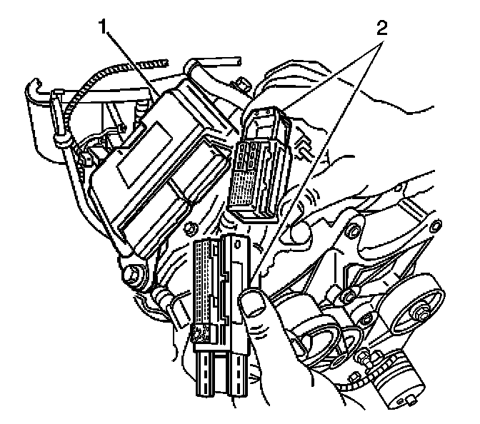 11. Disconnect the control module electrical connectors (2).